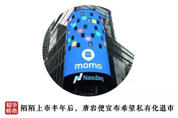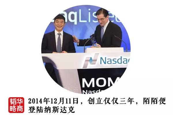 用户、营收双丰收的情况下,陌陌的上市也水到渠成。2014年12月11日,创立仅仅三年,陌陌便登陆纳斯达克。上市当天,唐岩让2岁多的儿子敲下按键,创造了最小敲钟人的记录。