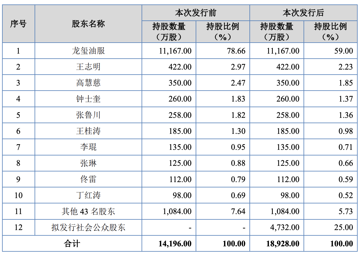 值得注意的是,股权结构方面,招股书显示,胜利龙玺(山东)石油工程技术服务股份公司(以下简称“龙玺油服”)持有祺龙海洋78.66%的股份,为控股股东。
