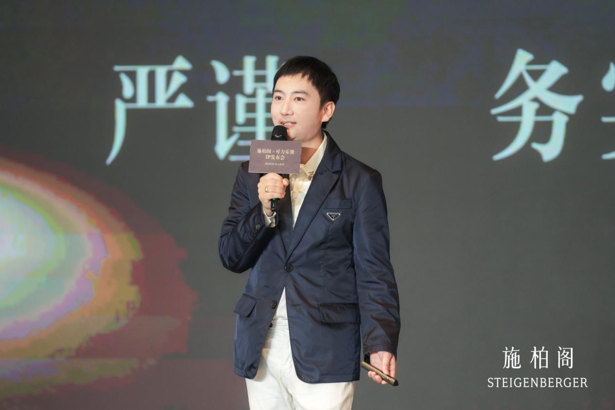 叶子乐在发布会上分享了他的设计理念:可力乐熊的名字寓意着“可”靠、有“力”量、传递快“乐”。“它没有眼睛,是希望我们用心去感受世界的温度。”他透露,此次合作历时近两年,从概念到落地共打磨了十五版设计方案,最终呈现出以“丝为媒、光为脉、施柏阁蓝为底”的独特视觉表达,抽象地诠释了能量在时空中流动的意境。更值得一提的是,双方签订了长达四十年的合作约定,这在国内IP合作领域尚属首创,展现了施柏阁在品牌文化建设上的长远视野。