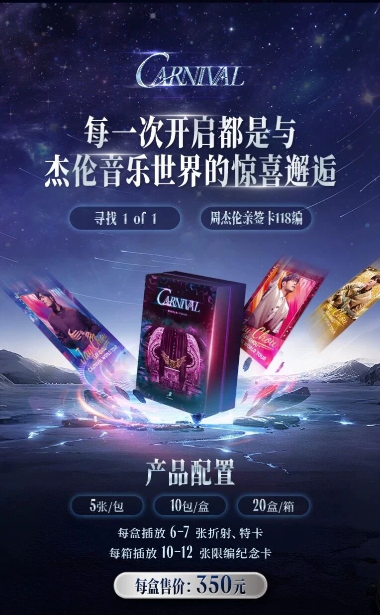 卡牌业务方面,巨星传奇已经正式切入这一细分高潜力市场。今年,继周杰伦以“周同学”账号入驻抖音3个月后,10月9日,Etersource品牌宣布推出官方授权周杰伦“嘉年华”世界巡回演唱会系列收藏纪念卡,巨星传奇作为该品牌发售的全球总代理。截至10月17日预售收官,首批10000盒收藏卡已经全部售罄,预计销售额达350万元。