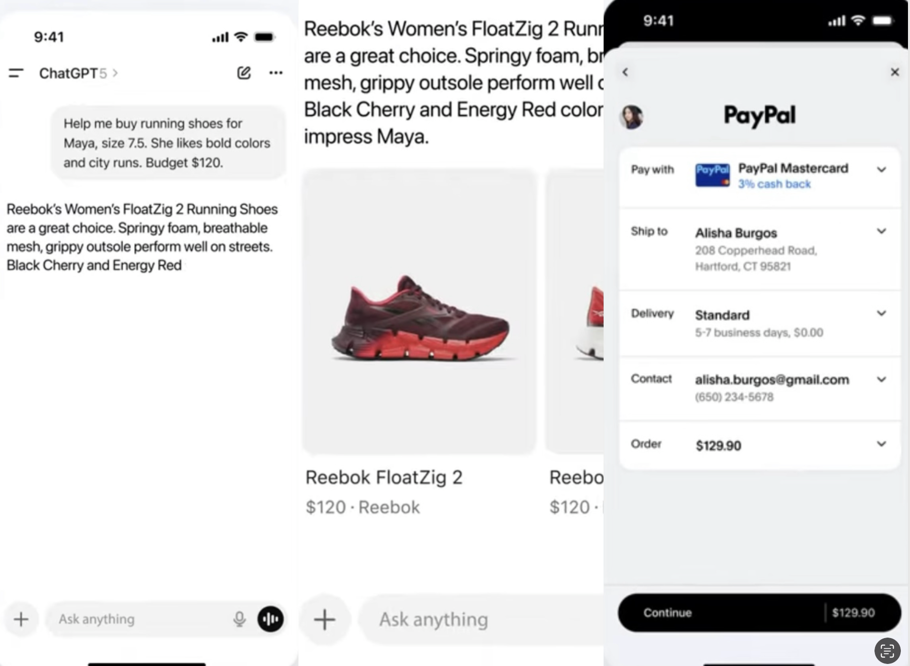 海外已经率先开始实践。近期OpenAI推出了“Agentic Commerce Protocol”(ACP)标准协议,中小企业无需复杂技术开发即可完成对接。今天ChatGPT可以无缝地调用PayPal的支付功能,实现了边聊边买的闭环。未来AI“超级入口”合作的平台越多,对传统电商入口的杀伤力就会越大。