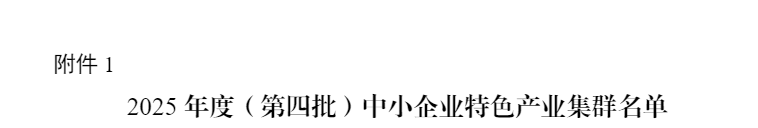 近日,工业和信息化部发布了2025年度(第四批)中小企业特色产业集群名单,全国100个中小企业特色产业集群入选名单。其中,河北省7个集群上榜。