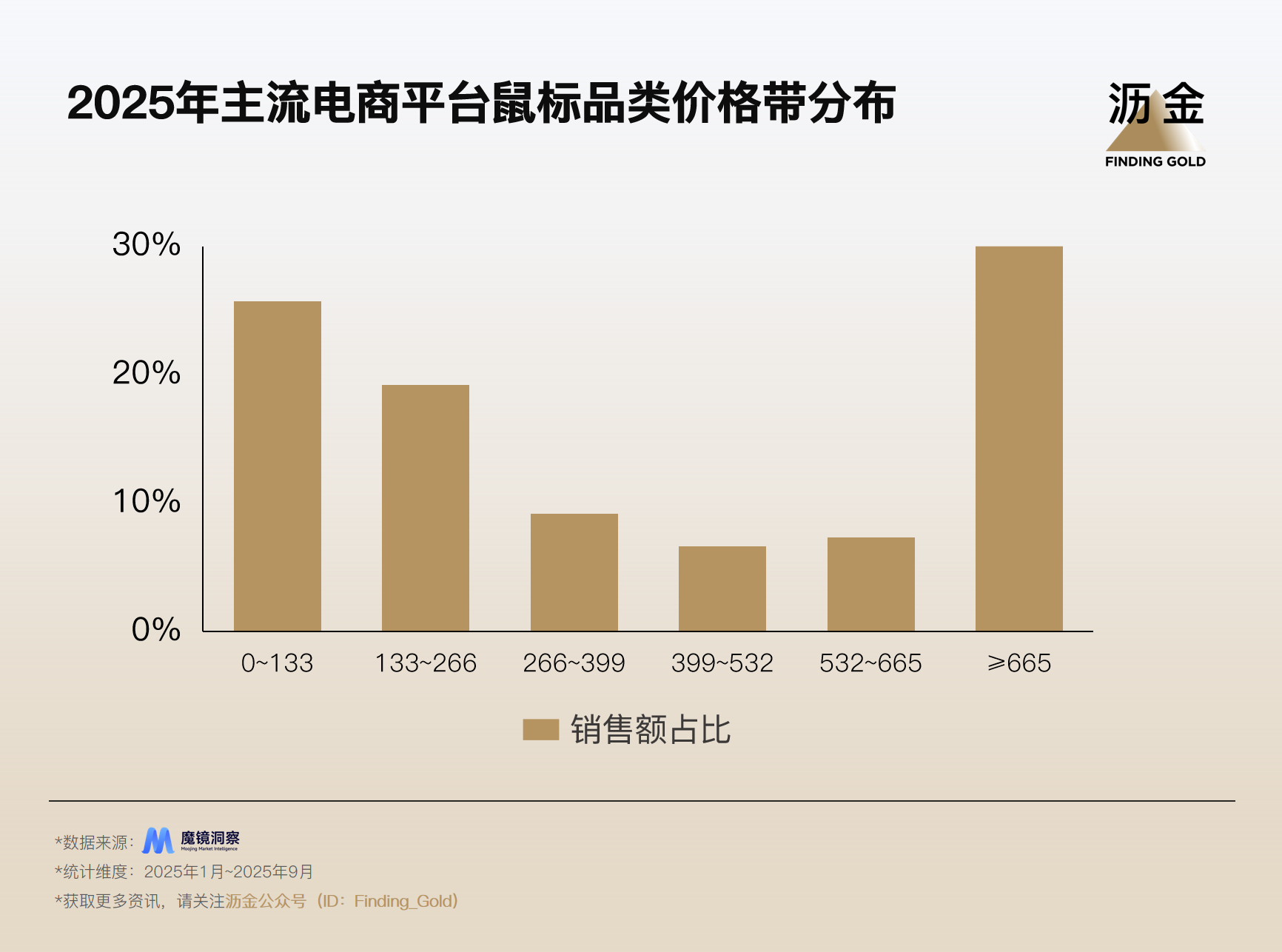 键盘品类500元以上价格带的销售额增幅超过68%,鼠标品类665元以上价格带的增幅更是超过87%,两者均远高于各自品类的平均增幅,具有技术领先性的高端产品已成为拉动市场增长的核心引擎。