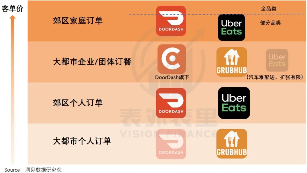 而这一幕,正是美国外卖平台错位竞争的缩影——玩家们基于自身特性,选择各自擅长的跑道,“占山为王”。