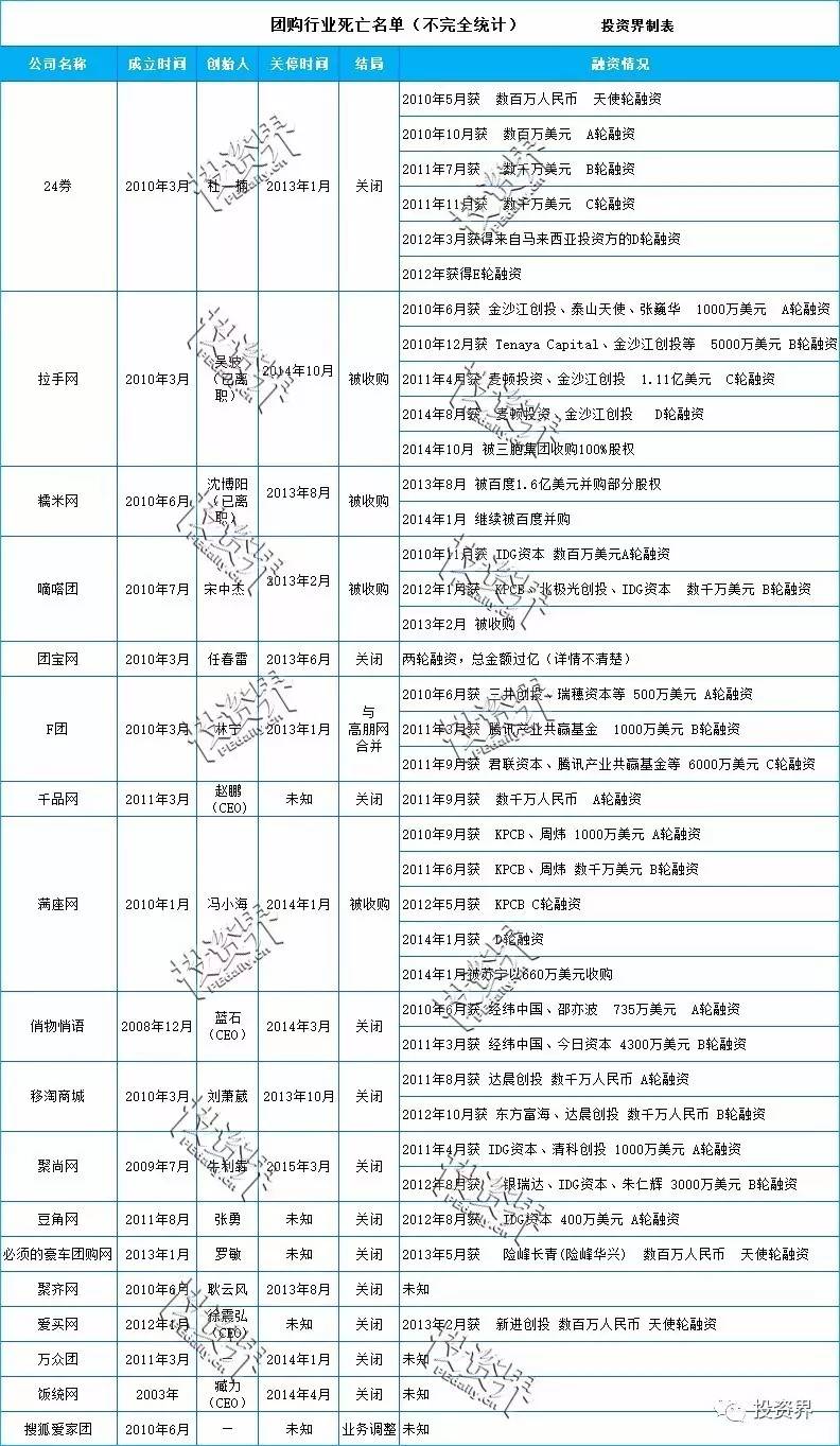 附部分团购项目死亡表(投资界不完全统计):