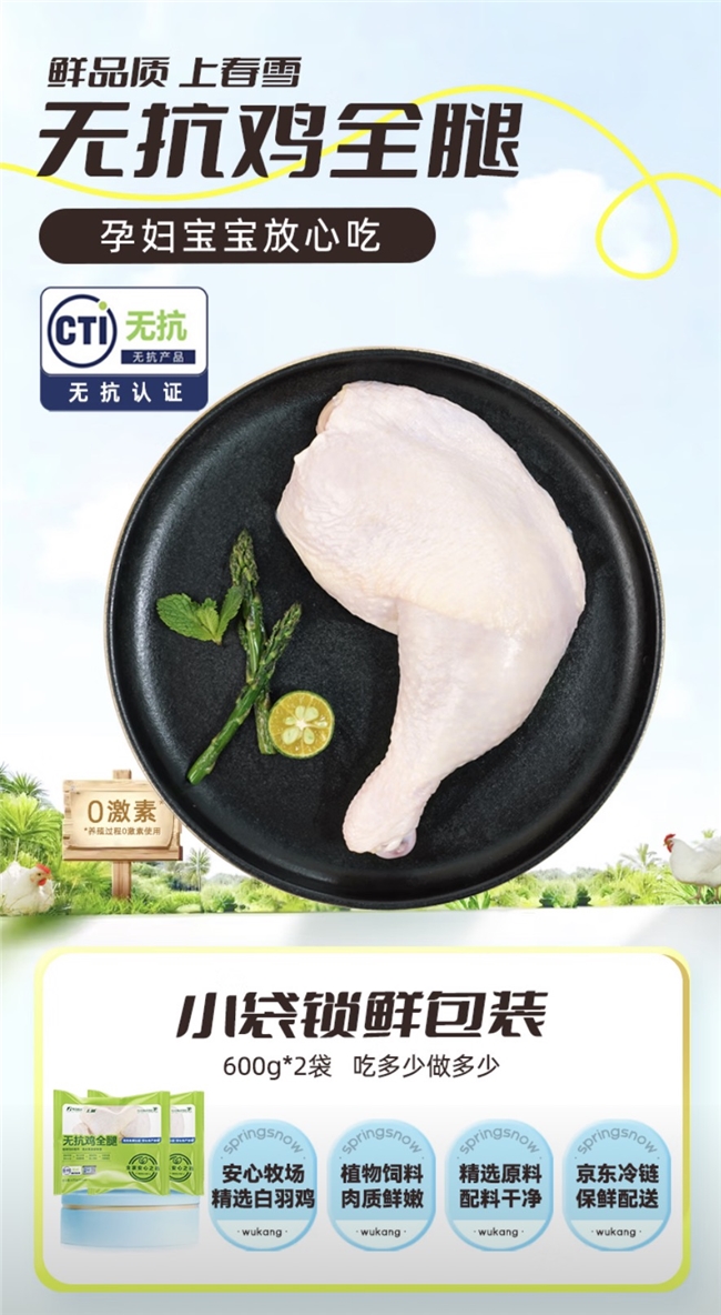 从无抗奶、无抗鱼到无抗鸡蛋、无抗烤肠……今年以来,春雪食品、大成食品、正大集团等多家头部禽肉企业纷纷布局“无抗”赛道,越来越多无抗产品被推向市场,折射出无抗消费的巨大潜力。作为京东生鲜与春雪食品共同打造的独家品牌,“上鲜”自推出无抗鸡肉系列产品后,凭借严格品控和配料干净,迅速在市场中展露头角,销量持续攀升。