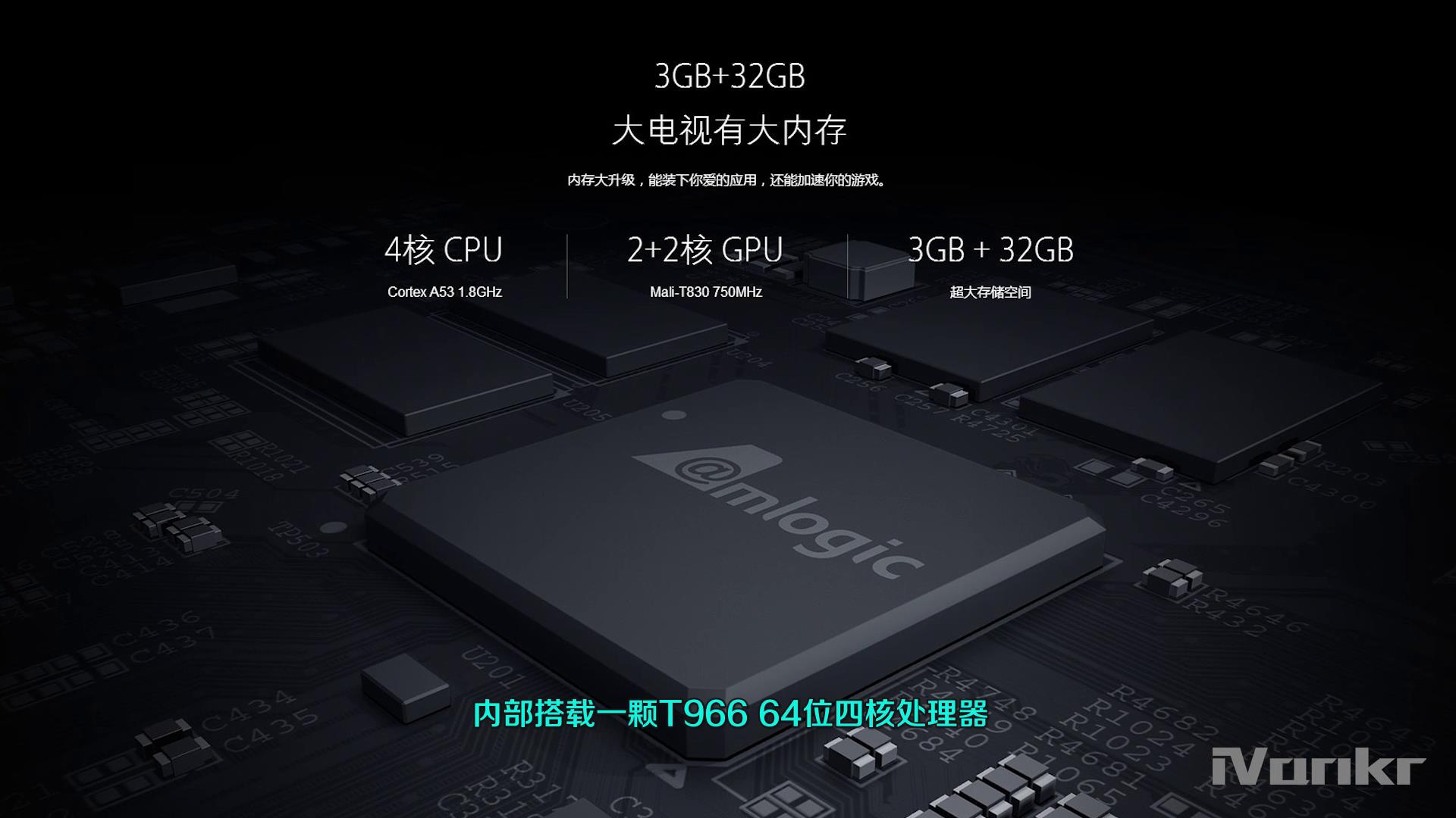 跟女人一样,电视不光要看外观,内在也很重要。65英寸小米电视4的配置达到了旗舰水准,内部搭载一颗T966 64位四核处理器,主频1.8GHz,GPU为Mali T830 MP2,32GB存储+3GB运行内存。