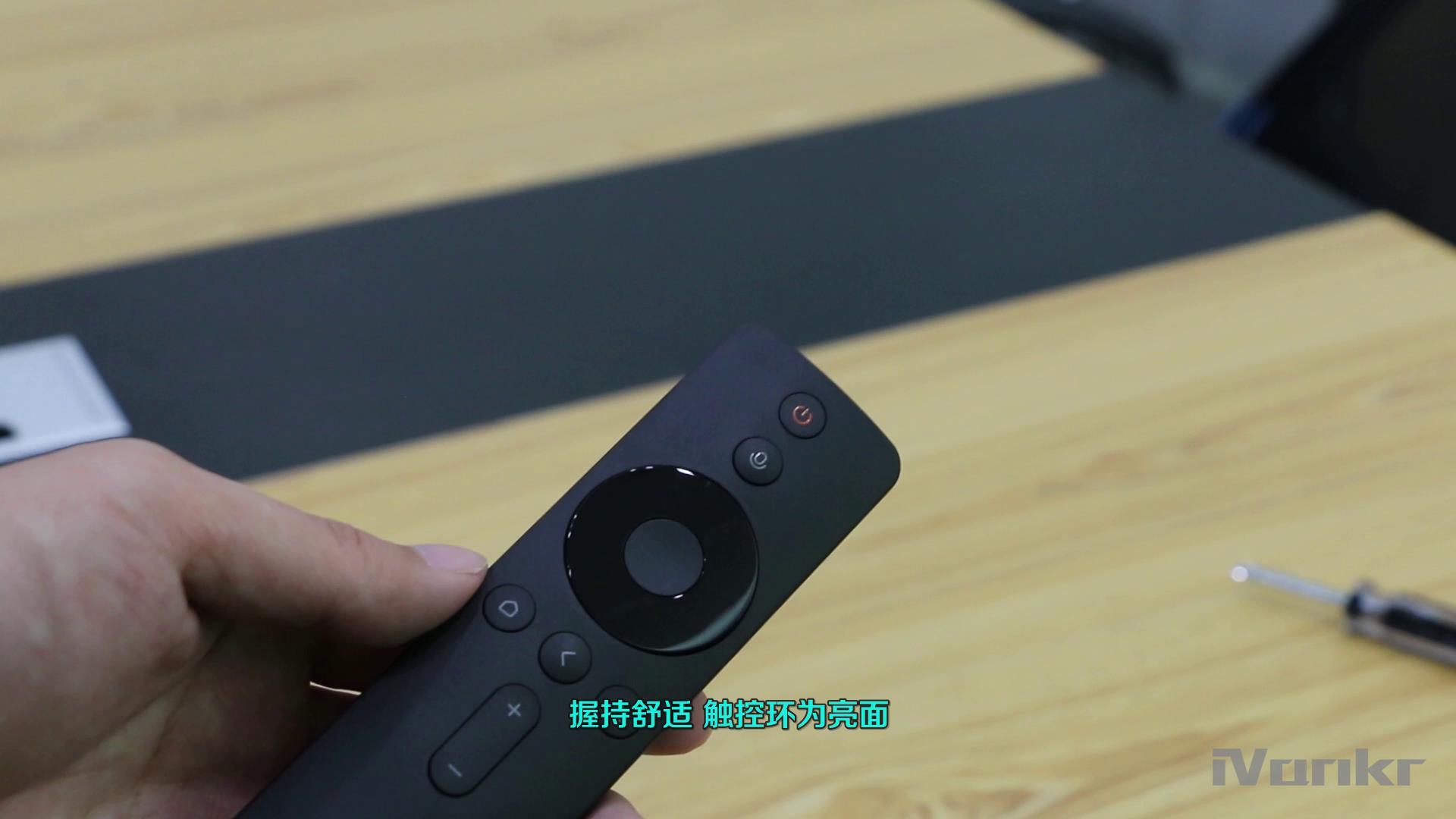说到遥控器,在这里有必要和大家好好聊一聊。这个蓝牙遥控器实际上是早些时候和小米电视4A一同发布的,这次也成为了小米电视4的标配。遥控器外壳表层经过磨砂处理,握持舒适,触控环为亮面,它由两节7号电池供电,按键并不多,非常容易上手。