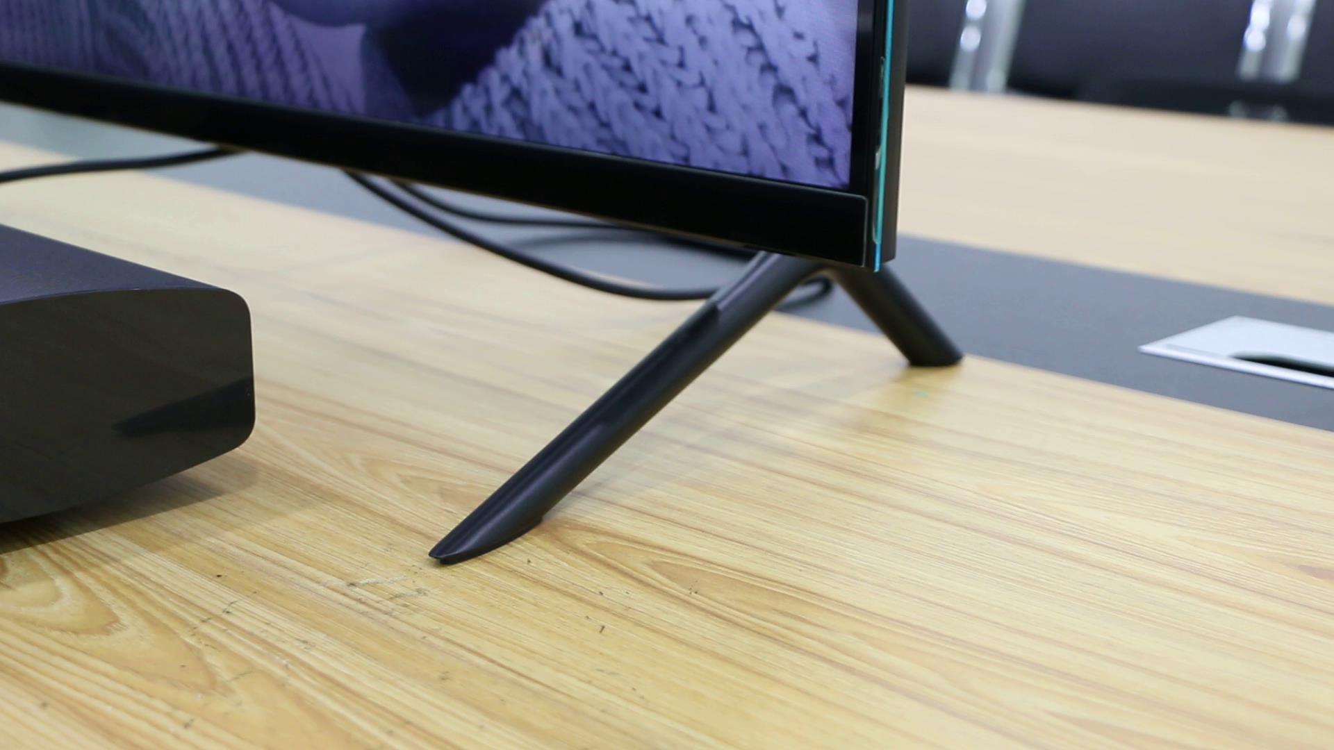 至于最下面支撑电视的底座,还记得当初在CES展示时,好像是那种透明的亚克力材质,也有过相关宣传,小米给大家的概念是在暗光情况下可以有那种悬浮的感觉。