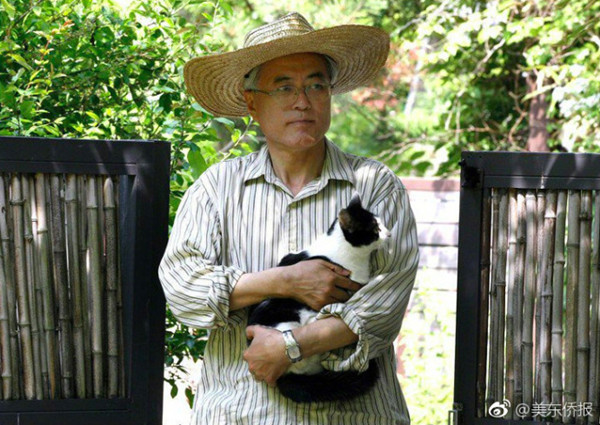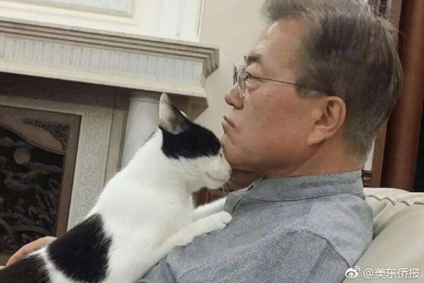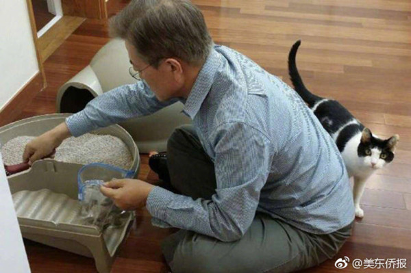 韩国总统文在寅成猫奴 给猫铲屎照曝光
