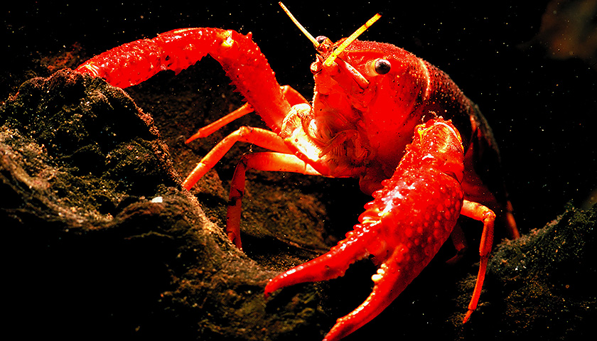 小龙虾的生长过程,是一个色彩的变奏曲,刚开始它是淡青色的,颜色慢慢变深,再从青色转红,它还小的时候,一旦变红就要蜕壳,七次后,小龙虾就不再长大了,这时,它红的很鲜艳,如果它们继续存活,颜色会逐渐变成深红,红褐色,甚至黑红色。一般来说,深红色的小龙虾,肉质已经开始发柴了。
