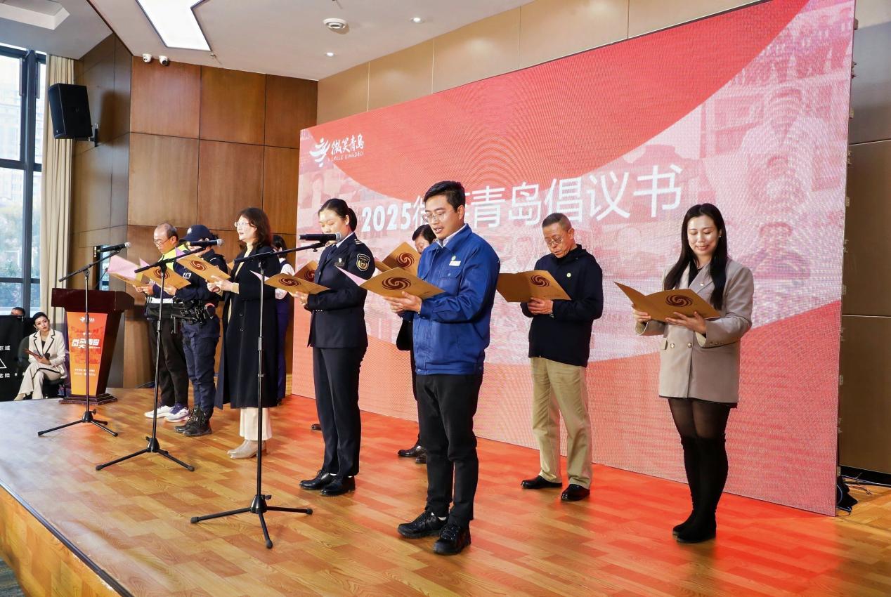 作为此次活动的重磅环节,青岛大学口腔医学院院长袁昌青,青岛市生态环境局城阳分局生态环境监控中心苏艳,青岛港国际集装箱发展有限公司副总经理徐珦,小麦岛景区退休保安蓝正信,城市救人“专业户”杨新生,青岛市公安局青鸾特巡队,浦口路、沈阳支路泊车管理员张国财,青岛城市照明有限公司运维工作负责人李亮,青岛联通安徽路奥运主题营业厅王明阳,中信银行青岛分行运营管理部委派会计经理王慧,王家村社区志愿者团队队长王晓卫等十余位微笑人物共同登台宣读《2025微笑青岛倡议书》,呼吁全社会共同传递微笑、共建文明青岛。