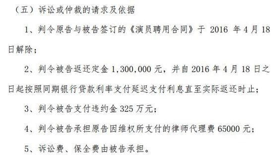 正栩影视第一次发公告,要求张艺兴支付违约金人民币325万。