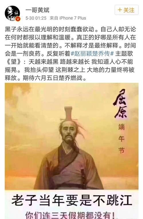 赵丽颖经纪人黄斌屡次发文疑回应此事,写道“黑子永远在最光明的时刻蠢蠢欲动。自己人却无论在合适都报以理解和温暖。不解释才是最终解释。”但随后删除。31日下午,赵丽颖发博晒楚乔剧照,配文:“荆棘之上仰望的人,会看透风尘”。并在评论里写下:“在这善恶彼伏的城,我与你共存@一哥黄斌。”力挺经纪人。