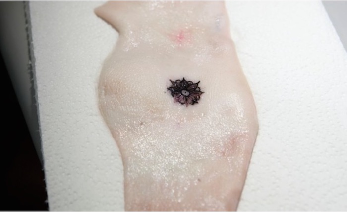 MIT媒体实验室的研究员Katia Vega近日公布了一项名为DermalAbyss的研究项目,这个项目的研究方向是把普通纹身里的墨水换成生物传感器。 Vega与哈佛医学院合作,用三种不同类型的生物传感器代替墨水纹在皮肤上,这些传感器将随着皮肤组织间液中相应物质的变化而变色,所以,纹身呈现的不同颜色就能反映身体里的葡萄糖、钠离子或是PH的数值。