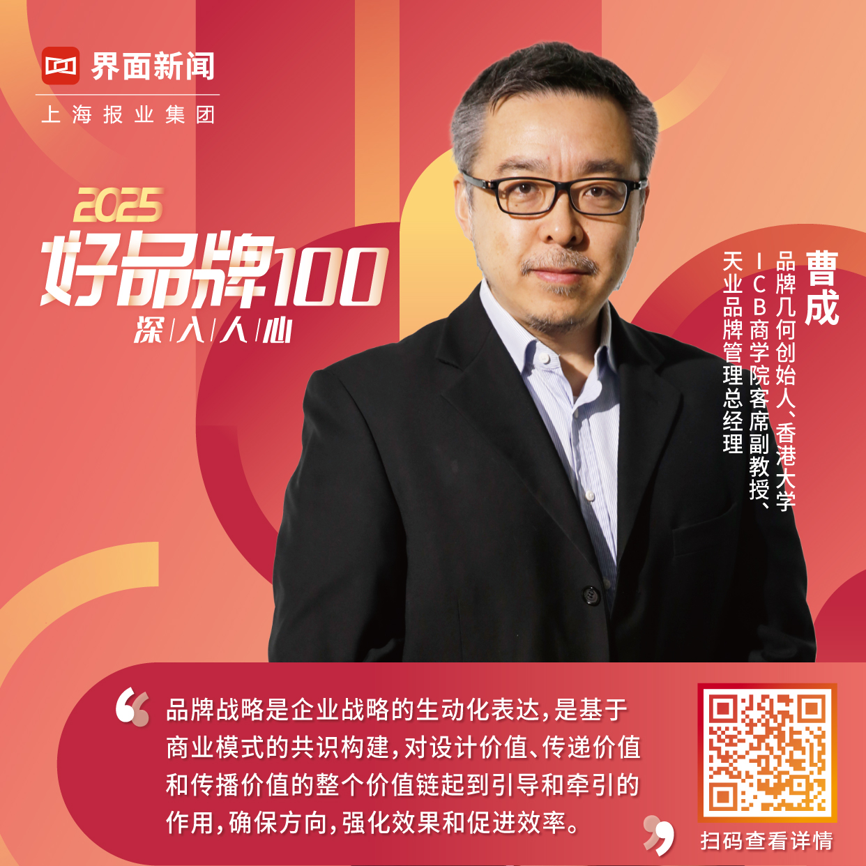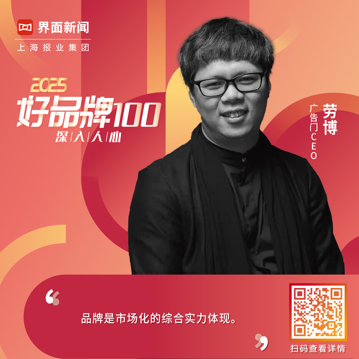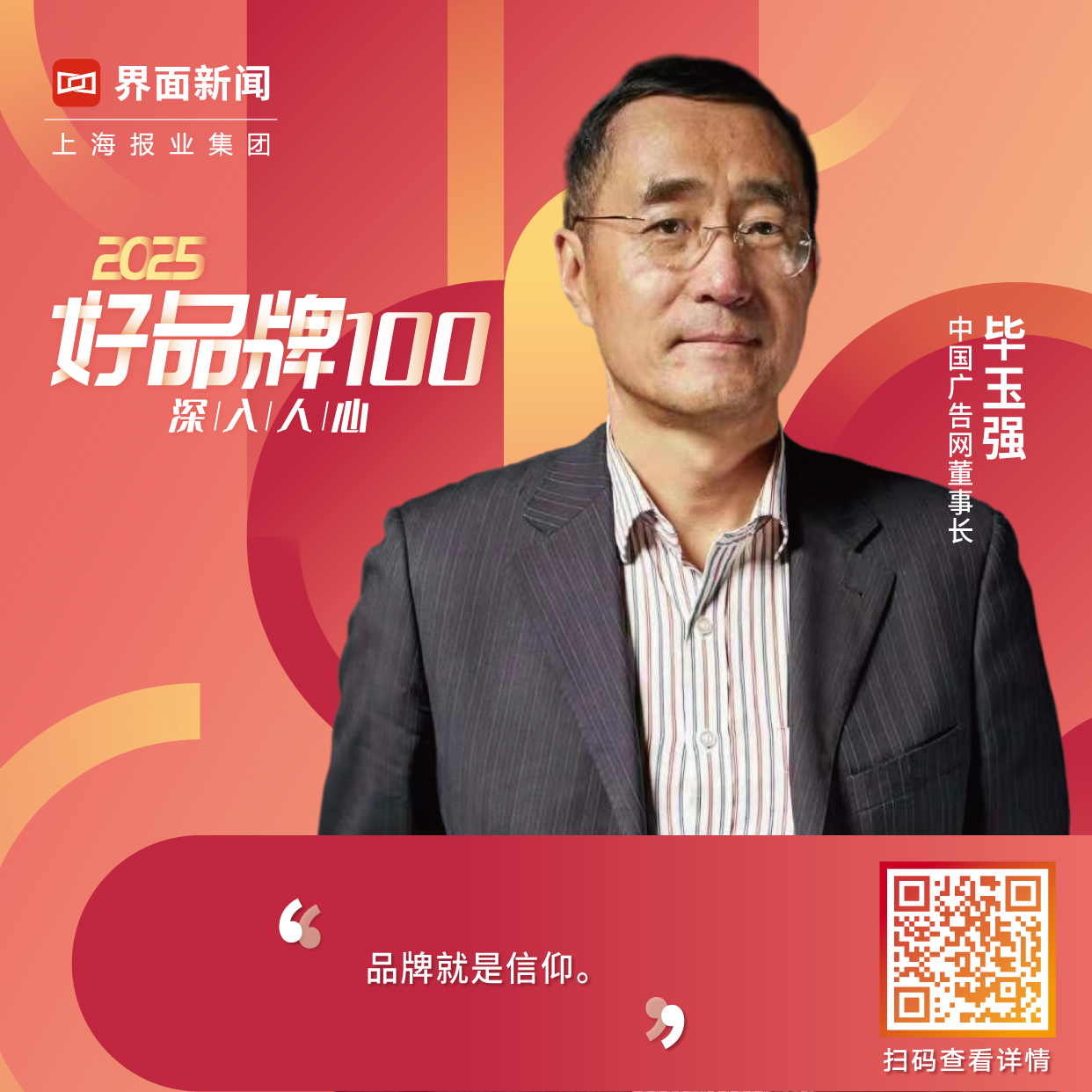 在此背景下,上海报业集团 | 界面新闻再度举办2025【好品牌100】评选活动。本次评选活动以寻找讲好品牌故事、拥有核心竞争力、持续创新、面向国际的“好”品牌,推动社会各界参与共建繁荣的品牌生态为目标,将聚集100位专家,聚焦100个行业赛道,最终评选出100个好品牌。由此,我们期待与各行各业对品牌发展有所思考的同仁一道,在对“好品牌”不断的重访中,寻得中国社会品牌向更好,向更善发展的未来可能。