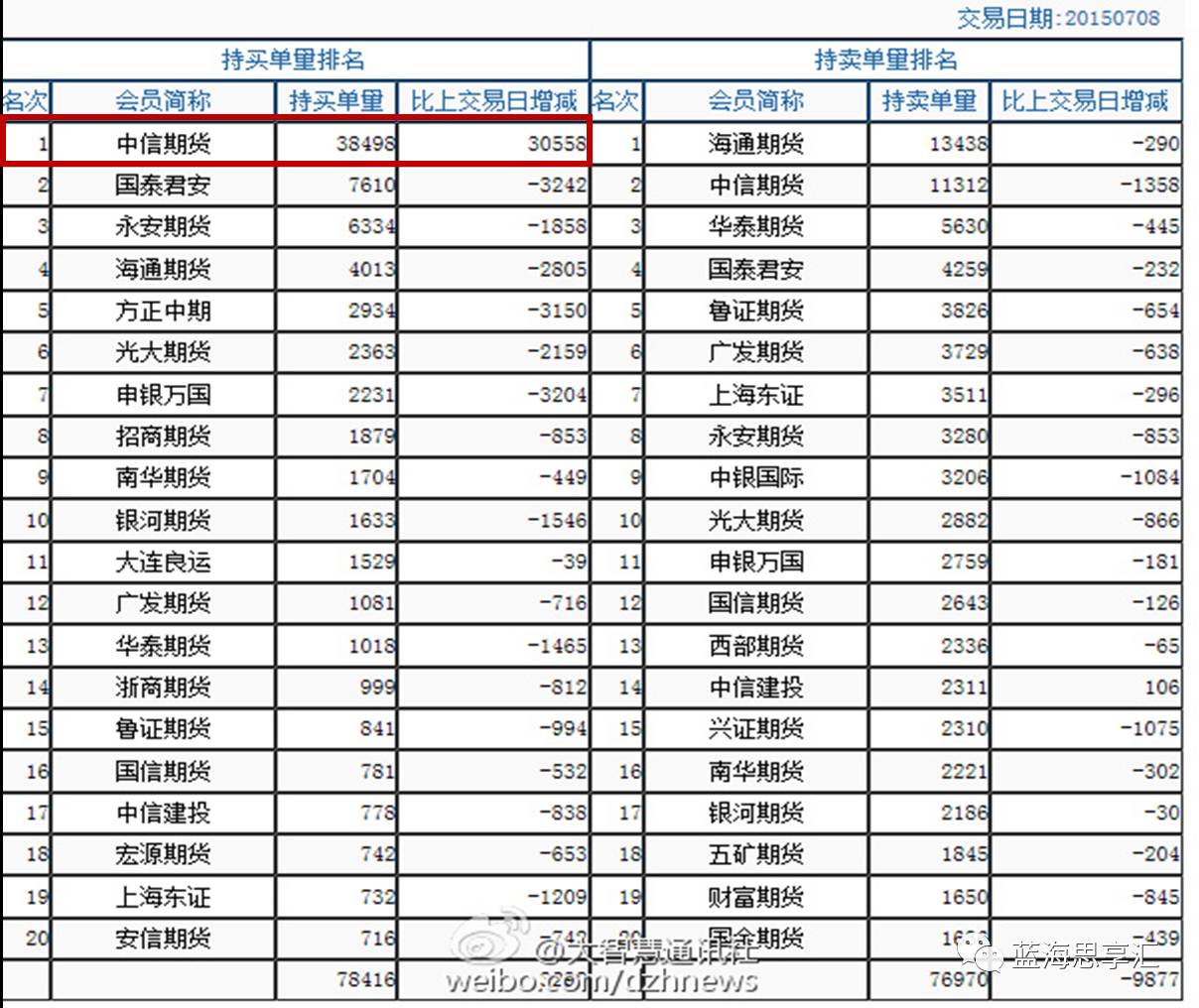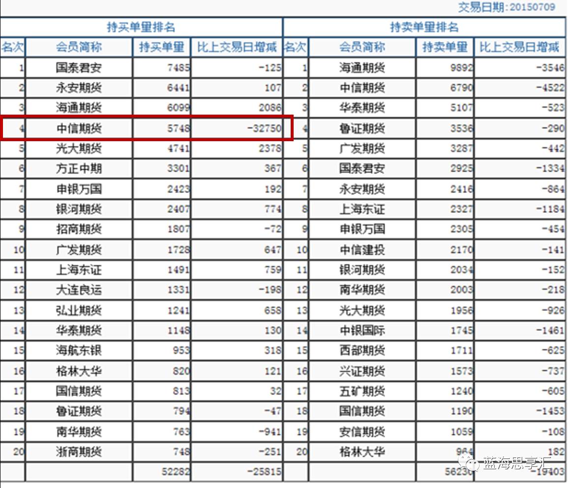 例如 ,2015年7月8日,期指主力合约IF1507中信期货席位大幅增持30558手被市场解读为国家队进场的信号,7月9日,股指期货全线涨停,中信期货席位却大幅减多32750手。粗略估算,3万手多单一日游,中信期货席位获利超过30亿元。