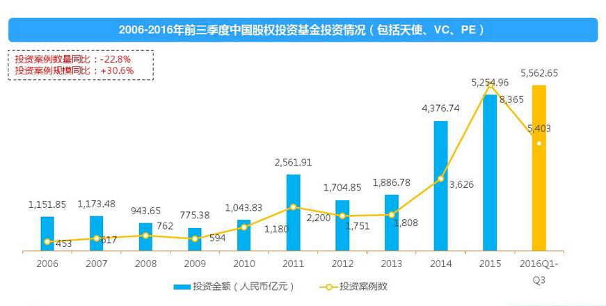 我们通过一组截止2016年的中国股权投资图表,来看一下进入2.0时代的中国VC/PE现状,包括募投管退各阶段。