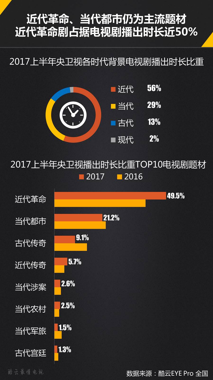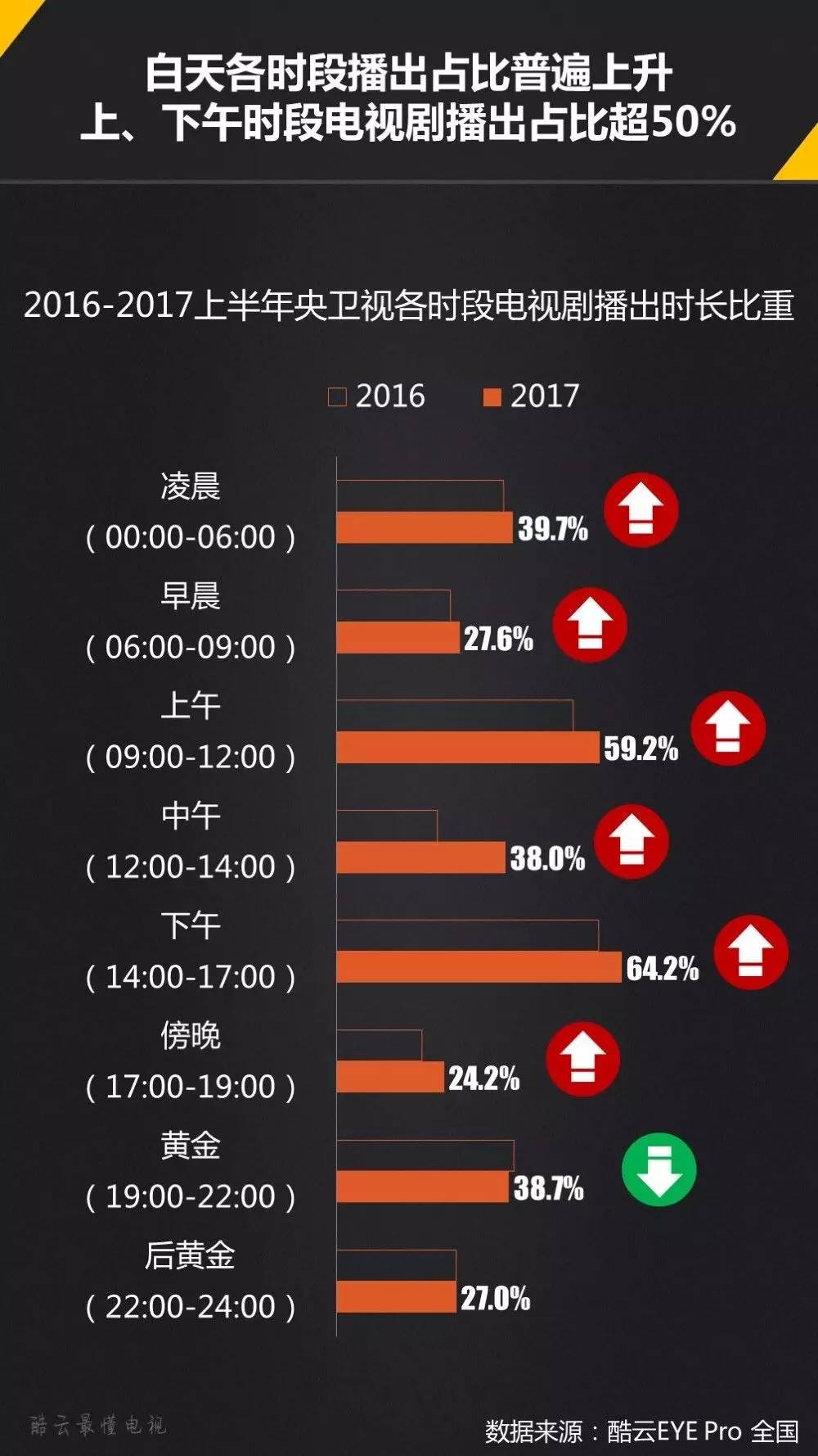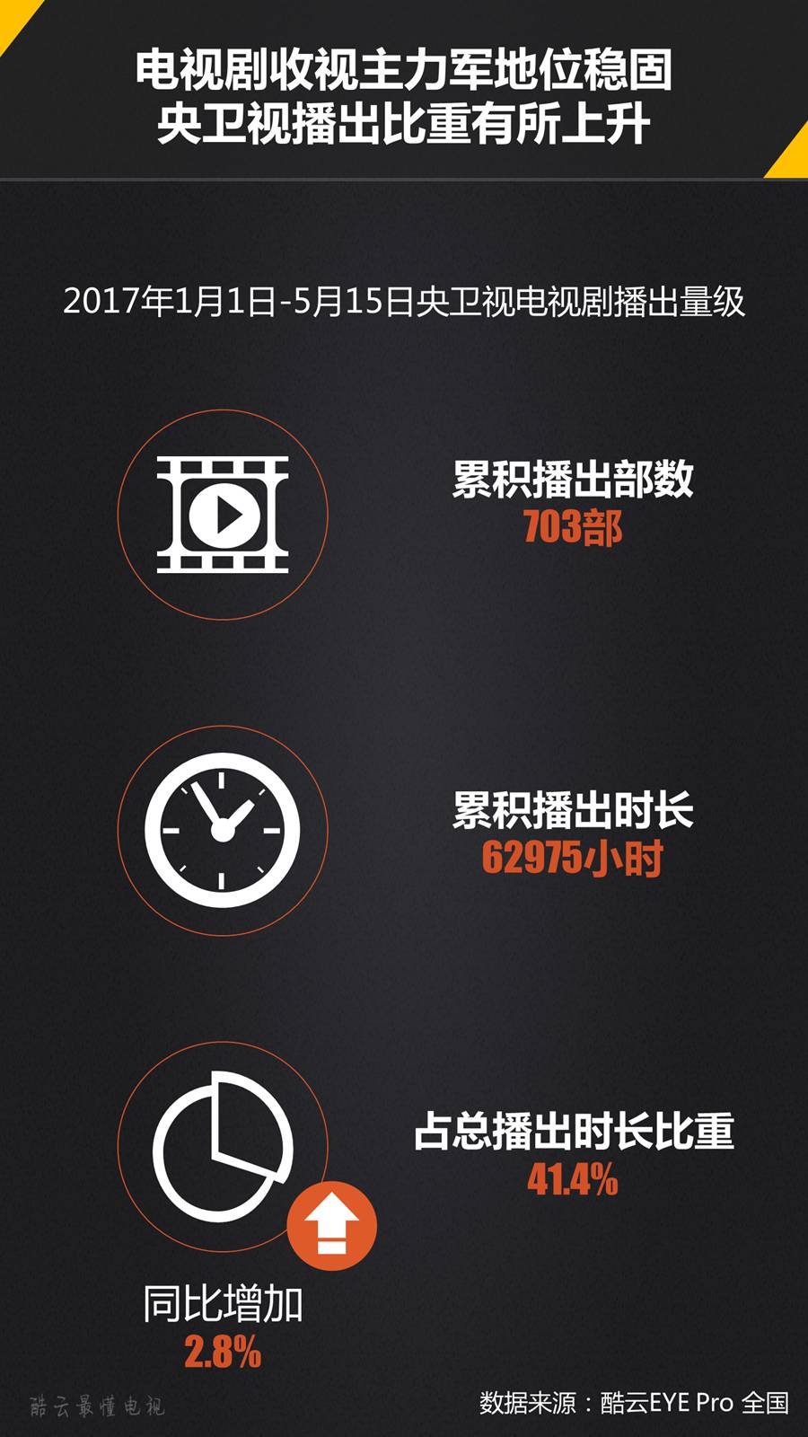 2017上半年,央卫视频道播出电视剧700余部,累计播出时长达62975小时,同比上升2.8%;