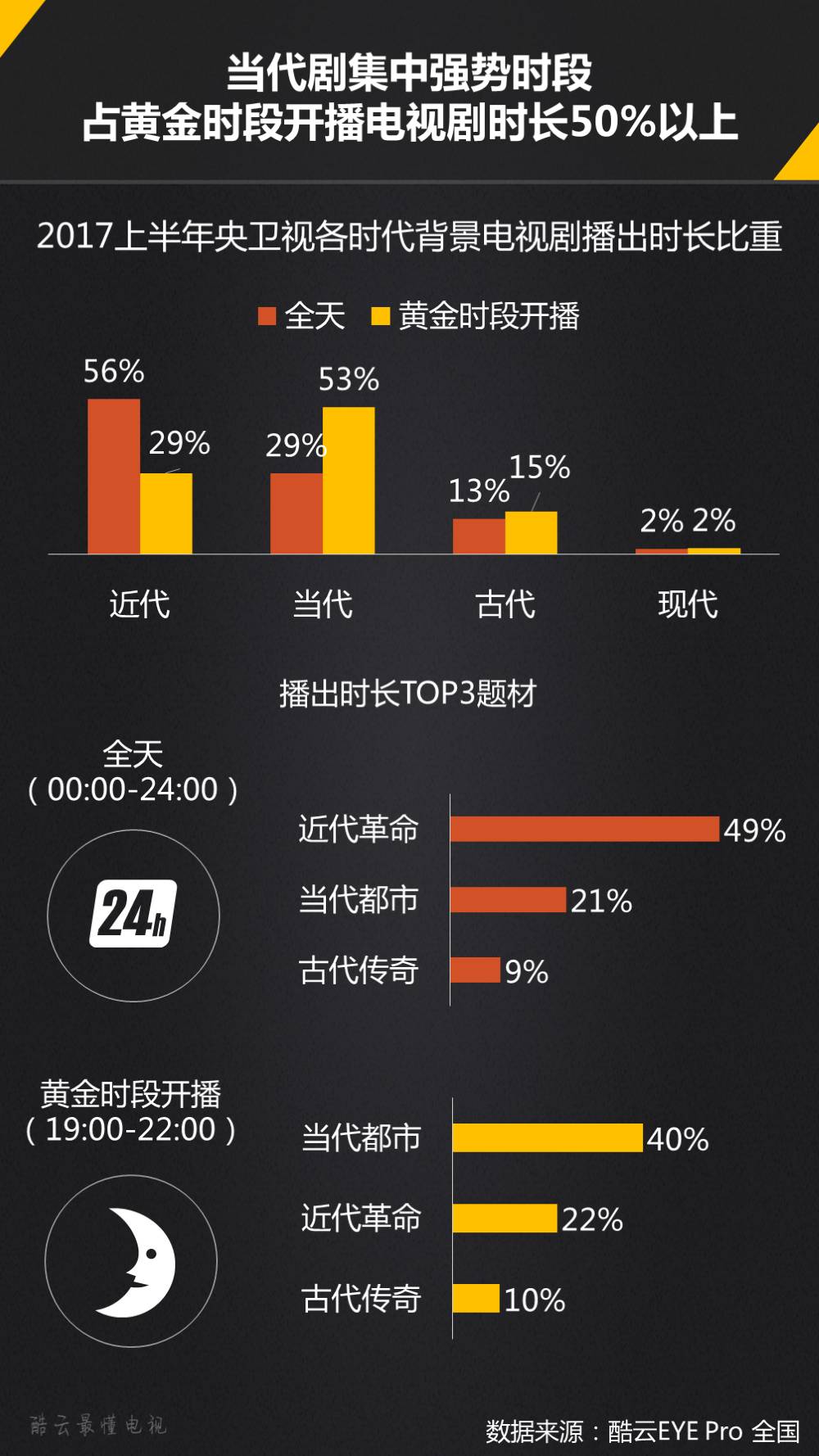 在黄金时段开播电视剧中,当代剧地位突显,占比高达53%。