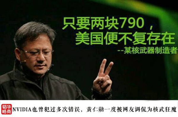 主持人的口误迅速被网友引用到NVIDIA身上,很多人把NVIDIA称为核弹工厂,而黄仁勋也摘得两弹元勋、核武狂魔、爆破鬼才之类的滑稽外号。