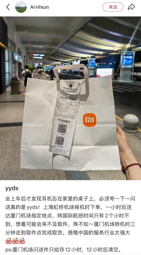 比如,眼下一些B端商家,已将闪送作为了可靠的运力补充。作为一家二奢线下门店主理人的Caroline,日常便通过闪送,将门店顾客选中的奢侈品包包送至客户手中,在她看来,优质的配送服务,也是自己门店品牌所主张的高档与优质服务调性的一种延展。