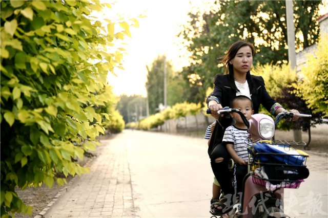 现在每天早上,袁萃红骑车带着两个孩子一起去幼儿园。孩子上学,她上班。晚上再骑车把他们俩带回来。老大 5 岁上大班,老二 3 岁上小班。两个孩子都十分可爱、懂事,老公在外打拼顾不了家,她则把家打理得井井有条,悉心陪伴着孩子的成长。