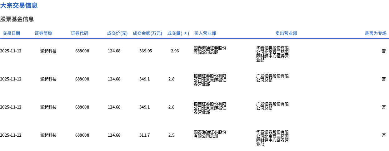 澜起科技今日大宗交易平价成交11.06万股,成交额1378.95万元