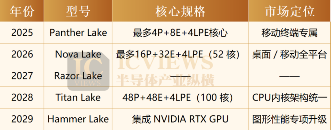 根据路线图,到了2027年,英特尔将会推出Razor Lake处理器,这将是最后一个采用异构P核和E核设计的CPU。Razer Lake将采用Griffin Cove P核和Golden Eagle E核,在明年发布的Nova Lake的基础上小幅提升。