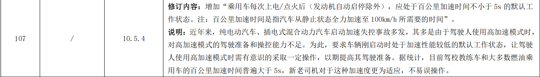 编制说明中提到,近年来,纯电动汽车、插电式混合动力汽车启动加速失控事故多发,其多是由于驾驶人使用高加速模式时,对高加速模式的驾驶准备和操控能力不足。
