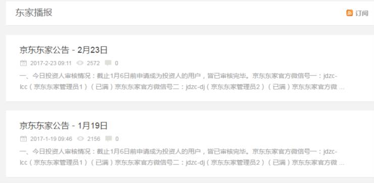 点进“东家社区”,“京东东家公告”一栏只更新到今年2月。