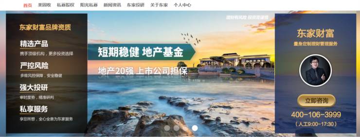 众筹家从东家首页的滚动条中发现了“东家财富”的链接地址,点击进入发现该平台主要上线了私募股权、私募证券、类固定收益三大类理财产品。据了解,“东家财富”是京东于去年年底上线的高端理财平台。