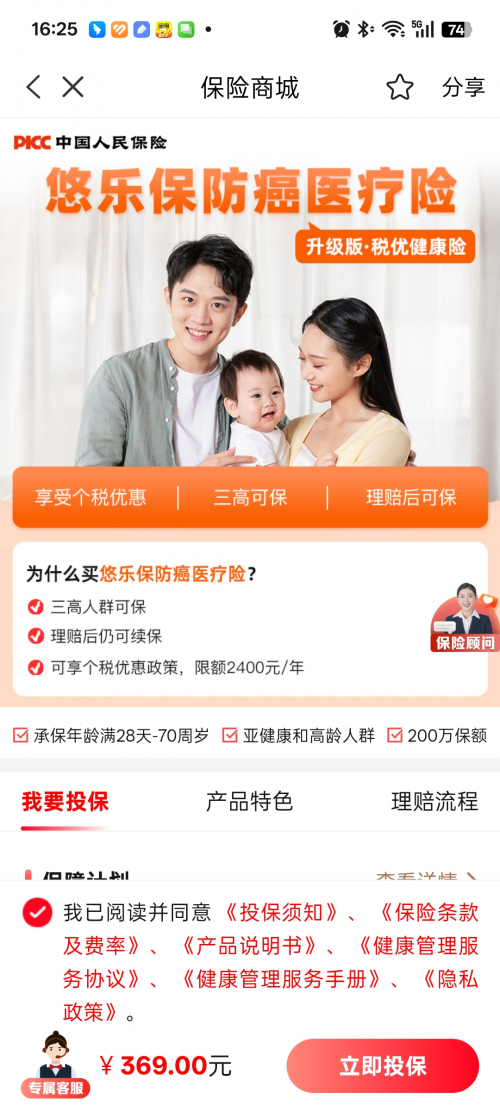 更让他惊喜的是,他发现为父母购买税优健康险,相关支出同样可以用来抵扣他自己的个税额度。王先生的父母年事已高且有“三高”,很多普通医疗险都无法投保。而“中国人保APP”上的“悠乐保防癌医疗险”,投保门槛相对宽松,正好解决了父母因患有慢性病而难以投普通医疗险的难题,也让自己的个税节税额度得到了更充分的利用。