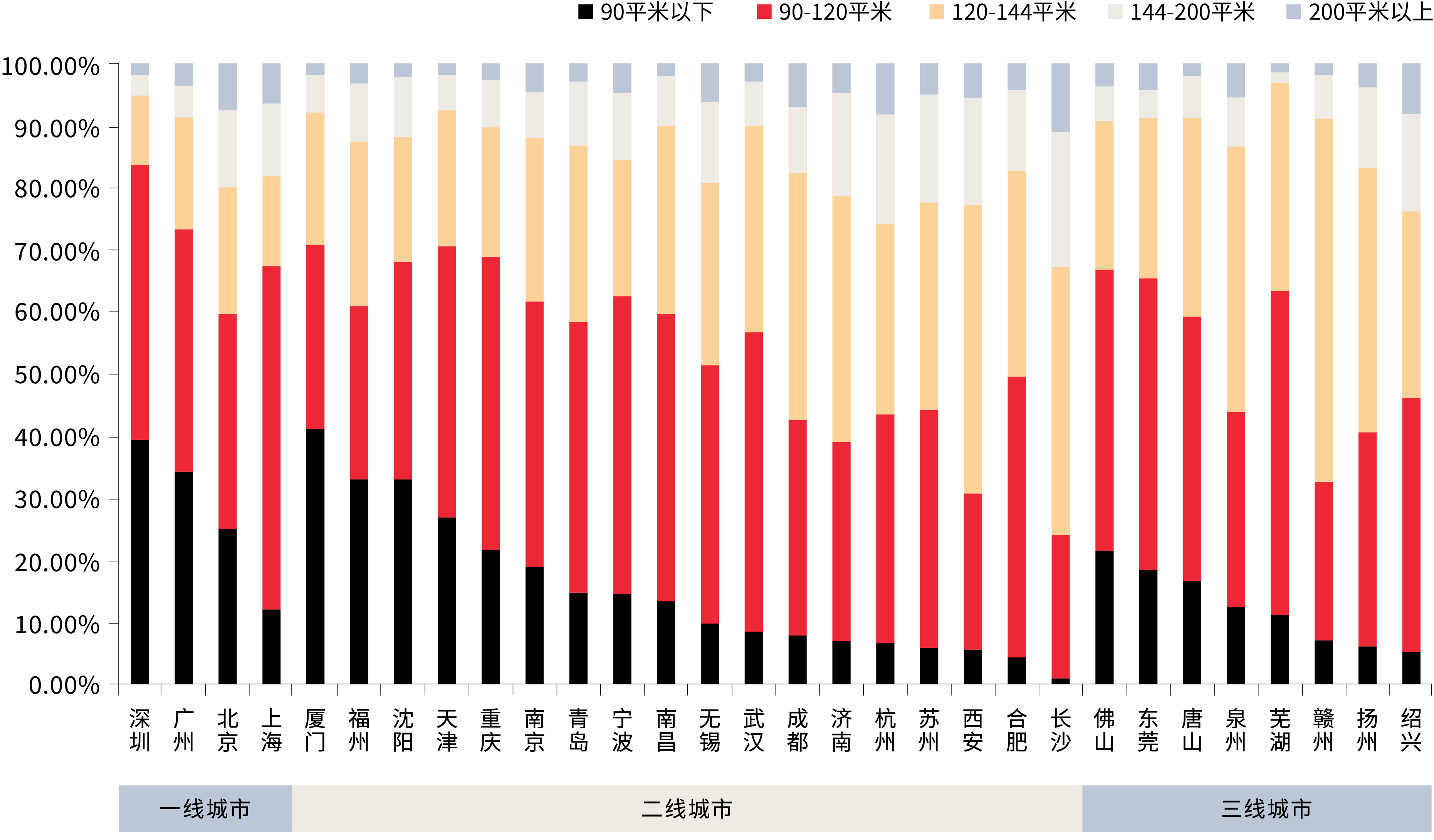 “中小户型”“改善型住房”是房地产市场的主流。中指研究院2024年发布的《中国房地产市场2024总结&2025展望》显示,从成交面积段来看,90-120平方米产品仍是新房市场需求主力。一线城市中,深圳、上海90-120平方米新建商品住宅成交套数占比均超四成,其中上海占比高达55%。此外,根据泽平宏观的测算数据显示,2025—2030年改善性住房需求和更新住房需求所占购房总需求的比重分别达41.7%和29.6%,合计占比超70%。
