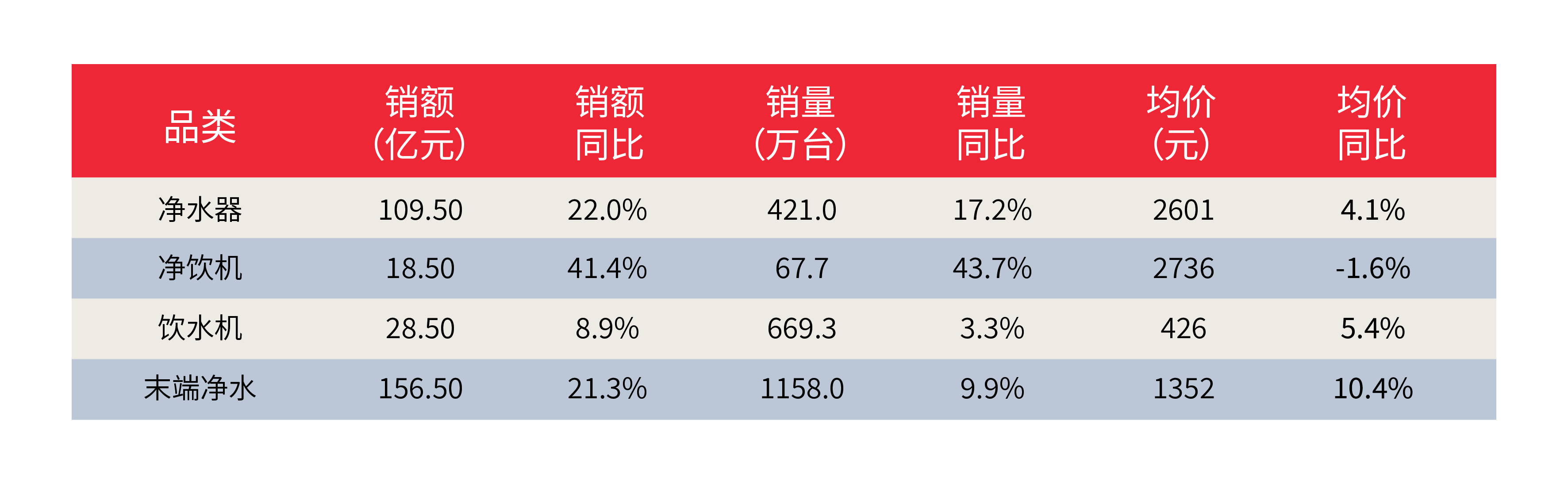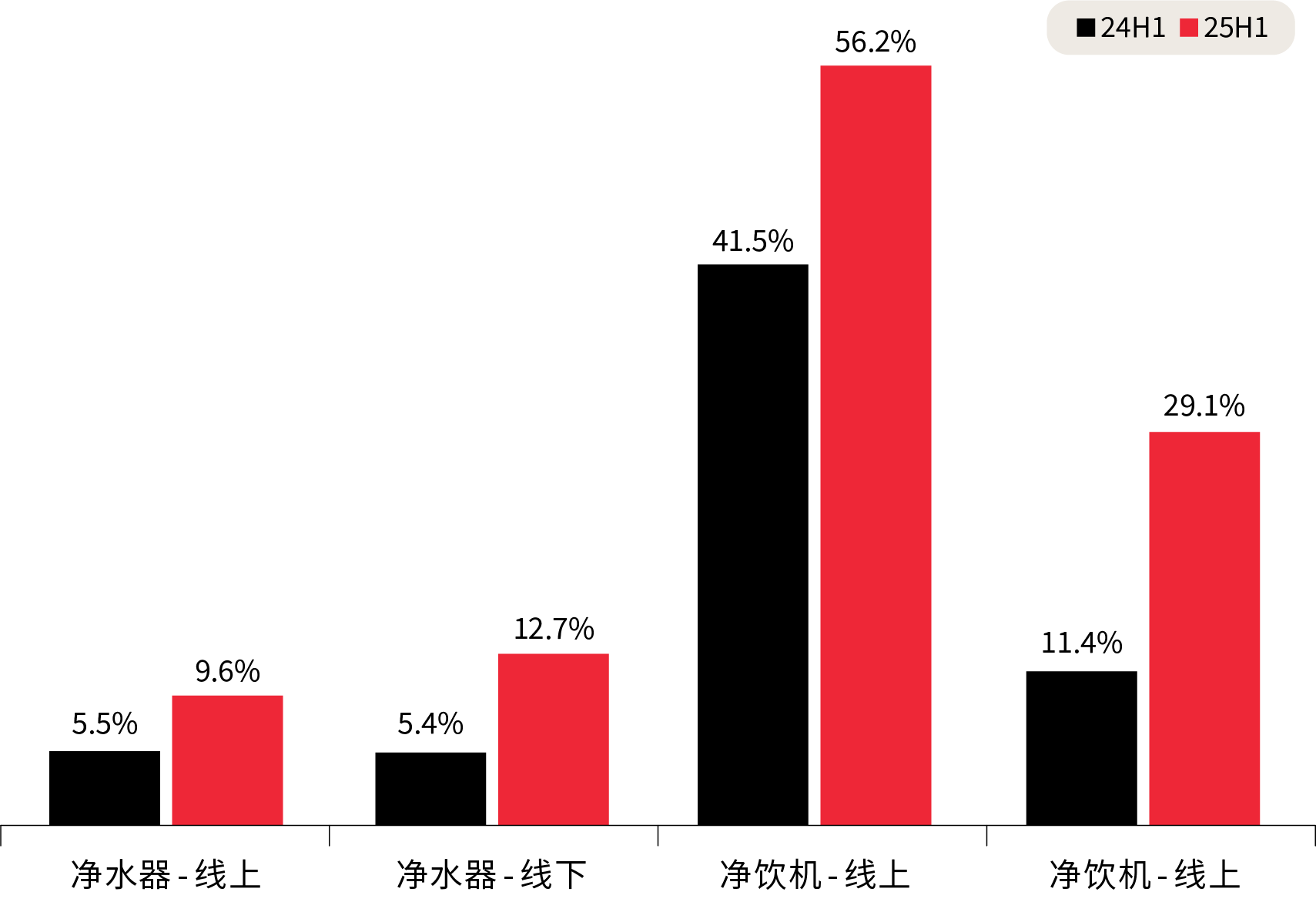 在政策、法规和标准的协同驱动下,净水行业呈现出“高增长+高端化”的“双高”特征。据奥维云网统计,进入2025年,市场增长势头进一步加快,上半年末端净水(含净水器、净饮机、饮水机)市场零售额156.5亿元,同比增长21.3%;零售量1158.0万台,同比增长9.9%。消费需求也加速向高附加值产品集中,“矿化水机”、“净热一体”、大通量、智能化等具备核心技术优势的产品,成为市场主流选择,推动行业正式进入以技术升级和品质体验为核心的高质量发展阶段。