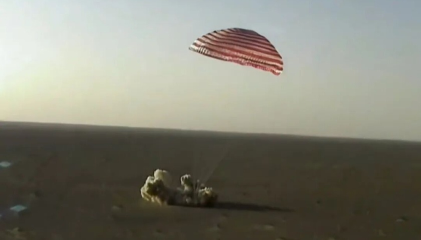14时49分,北京航天飞行控制中心通过地面测控站发出返回指令,神舟二十一号载人飞船轨道舱与返回舱成功分离。之后,飞船返回制动发动机点火,返回舱与推进舱分离,返回舱成功着陆,搜救分队及时发现目标并抵达着陆现场。返回舱舱门打开后,医监医保人员现场确认神舟二十号乘组航天员陈冬、陈中瑞、王杰身体状态良好。