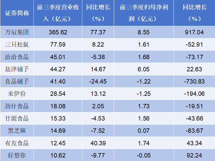 零食巨头三季报出炉:净利润最高增9倍,有企业下滑700%——华商美食