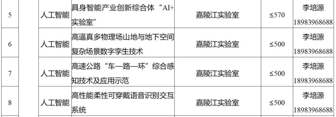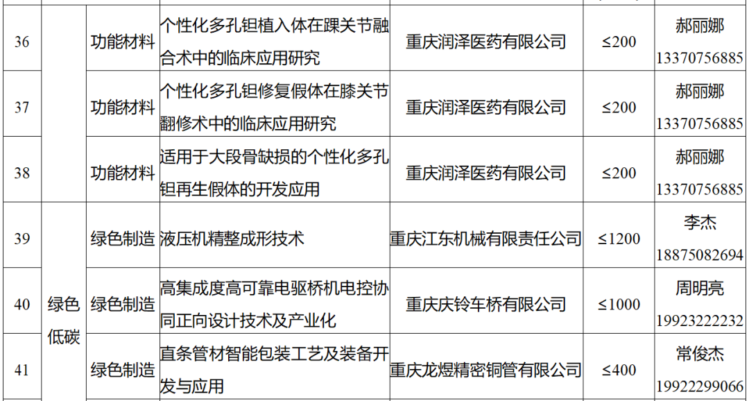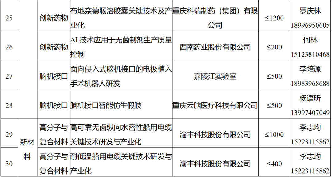 重庆市科技攻关“揭榜挂帅”项目榜单