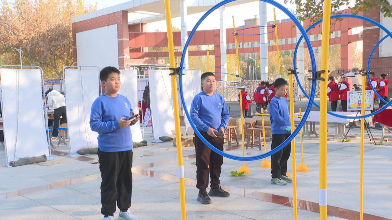 小毕村小学学生韩鸣晰介绍道,我们刚才展示的是无人机障碍穿越,需要在2分钟之内完成,这对我们的挑战很大。我们小毕村小学每个星期都会开展无人机课程,我已经练了好几个月了,我特别喜欢操控无人机。