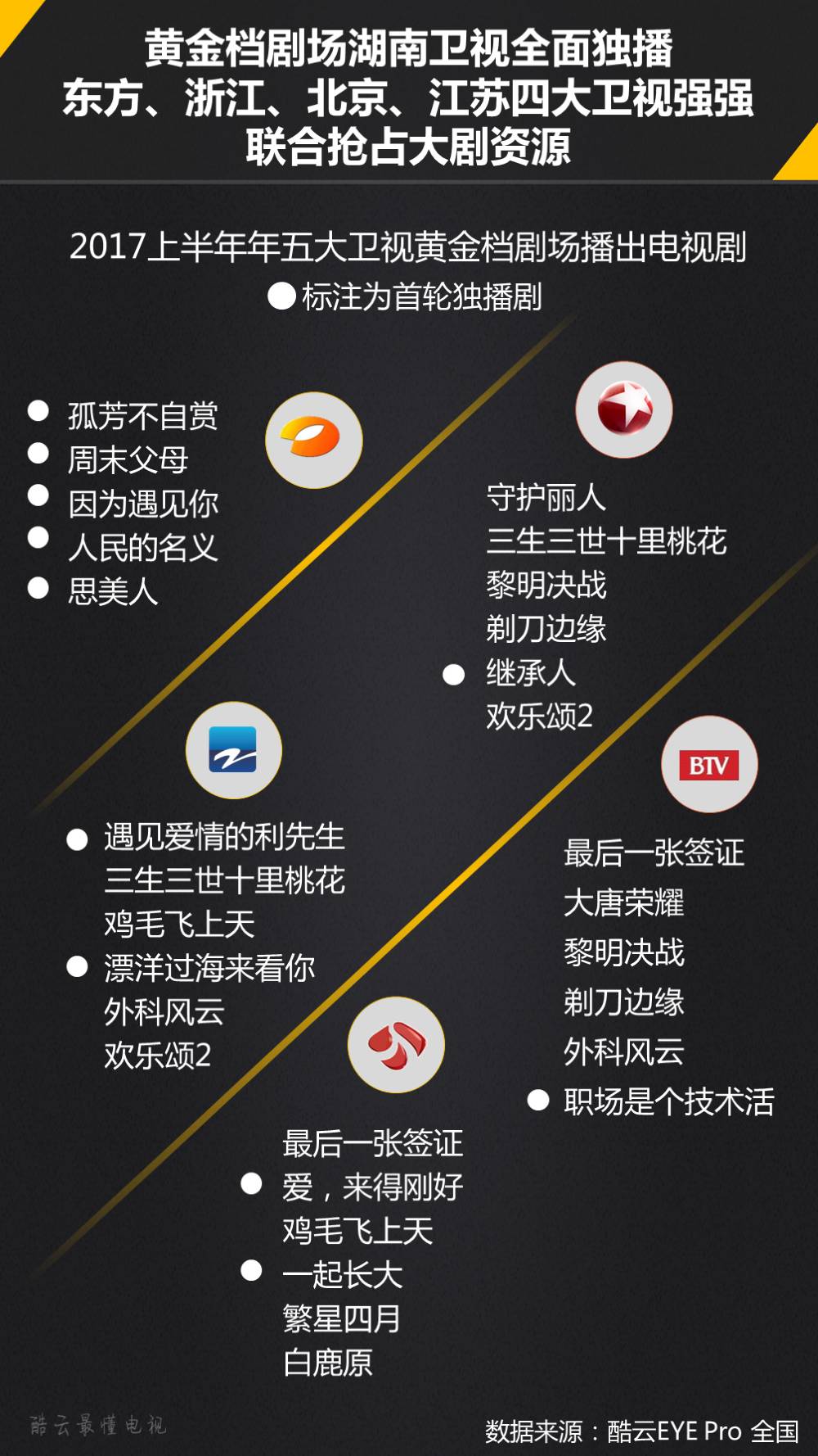 五大卫视黄金档剧场全面播出首轮剧,湖南全面独播,东方、浙江、北京、江苏强强联合。