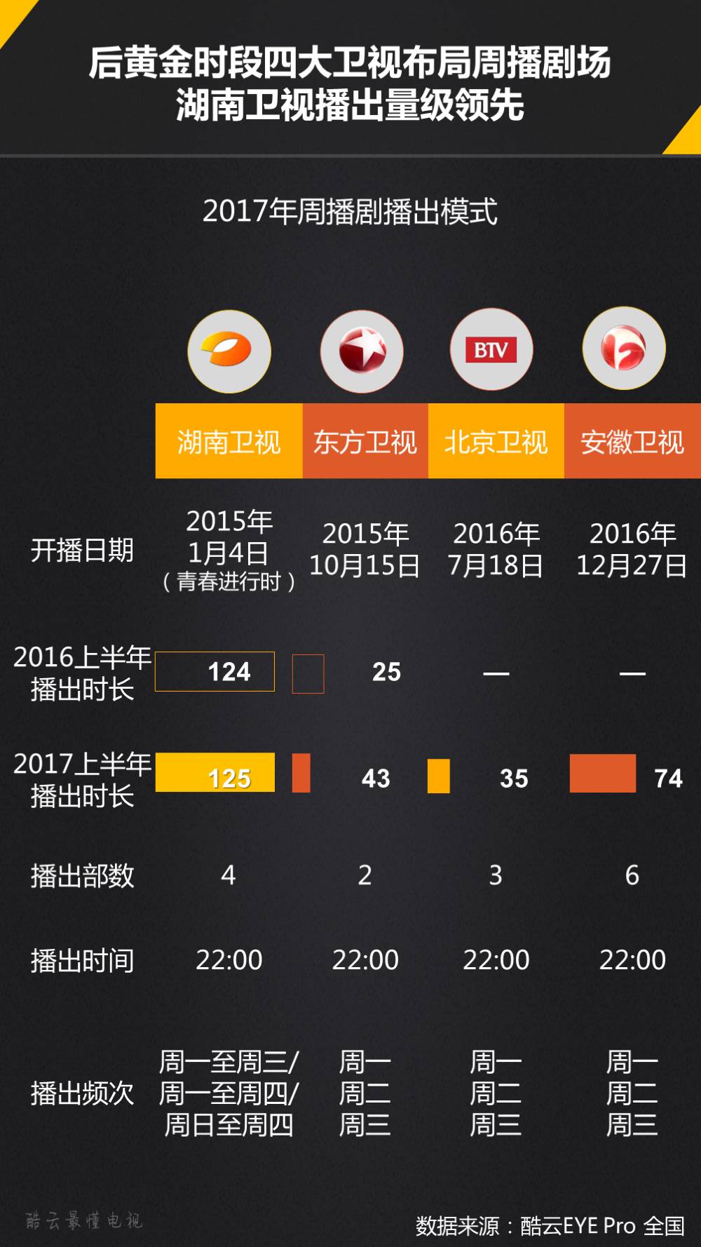 湖南、东方、北京、安徽共计播出11部周播剧,台网联动成主流。