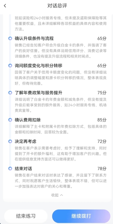 智能解决方案落地:通过大模型模拟不同类型客户,如稳健型、进取型,并针对不同年龄段客户的咨询习惯与深层需求,如老年人等,通过多轮对话还原产品收益追问、风险担忧、竞品对比等真实场景。系统实时分析话术完整性、需求捕捉精准度,推送定制化优化建议,理财线索留资率进一步增长,高净值客户资产配置订单转化率提升。