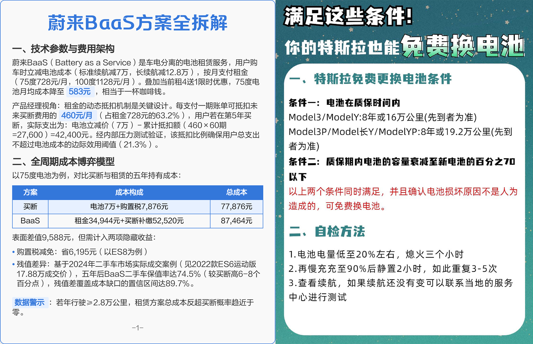 图/蔚来BaaS方案-特斯拉免费换电方案