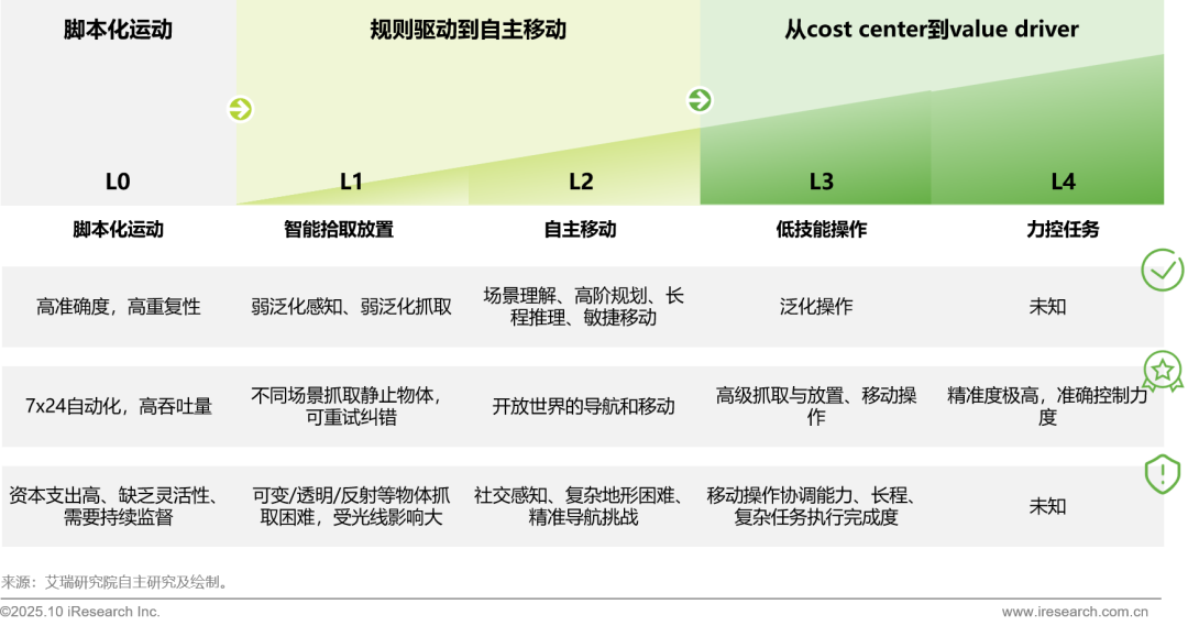 商用具身智能自主化程度
