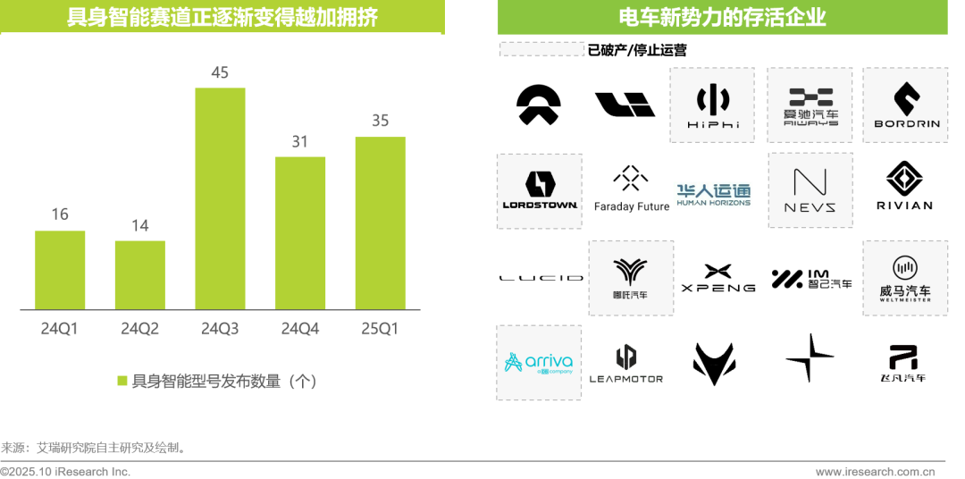 从光伏、锂电到电车,国内万亿级市场总会面临滞后的市场准入和监管。近两年的具身智能融资,已经出现产品同质化现象,但仍有初创企业加入该赛道。回顾电车产业的发展历程,从百家争鸣到如今几乎个位数的主流市场品牌,具身智能在未来三年的整合趋势不可避免,第一轮洗牌也不会太远。高昂的研发投入、复杂的供应链管理、规模化生产挑战以及构建“AI+硬件+生态”闭环的巨大难度,最终竞争格局仍是少数玩家的市场。
