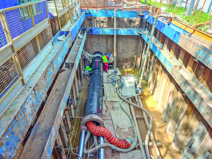 在机场大道的施工现场,工人们正在数米深的作业井内进行地下管线推进。“截至目前,主管线已完成70%铺设,预计8月底实现与银龙水务的管网对接,10月底完成与首创水务的连通。”运城发展投资集团有限公司项目施工负责人介绍,管线采用DN600毫米至800毫米规格,双管平行布设,设计最大供水量10万立方米/天。其中,首创水务供水量6万立方米/天,银龙水务供水量2万立方米/天,预留流量2万立方米/天。