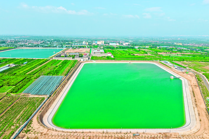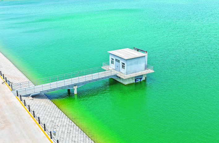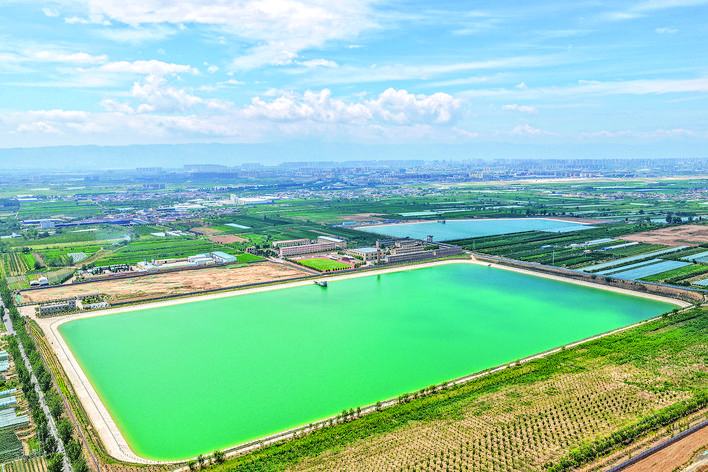 清晨的阳光掠过盐湖区半坡调蓄库1号库区,水面泛起的粼光与周边农田的绿意相映成趣,这座容量达136万立方米的“大水塔”,连同85万立方米的2号库,共同构成总库容221万立方米的调蓄核心,相当于为运城中心城区储备了至少10天的应急用水。