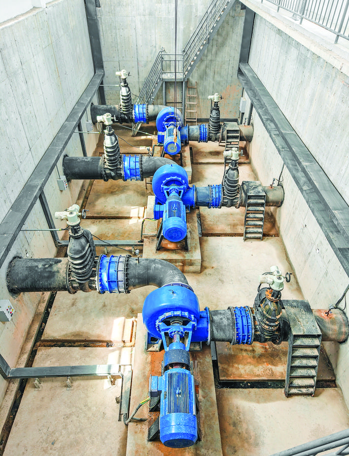 在提升泵站的控制室里,三台水泵(两用一备)正通过自动化系统精准调控水流。“每台水泵功率125千瓦,总装机容量374千瓦,设计流量2立方米/秒。”看着屏幕上的实时数据,负责人告诉记者,通过封闭式管理模式,从水源引入到存储再到输送,构建起全流程污染防控体系。