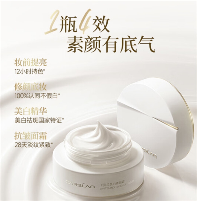 卡姿兰全新美白素颜霜1瓶实现 “美白精华 + 抗皱面霜 + 保湿妆前 + 修颜底妆” 的多维功能,满足 “精简护肤 + 快速上妆” 的进阶美妆需求,无论是通勤、约会还是日常出街,都能一键打造 “天生好皮” 既视感,真正让上妆过程更高效,护肤效果更持久,让每一次上妆都成为肌肤“越妆越白、越养越嫩”的美丽蜕变。