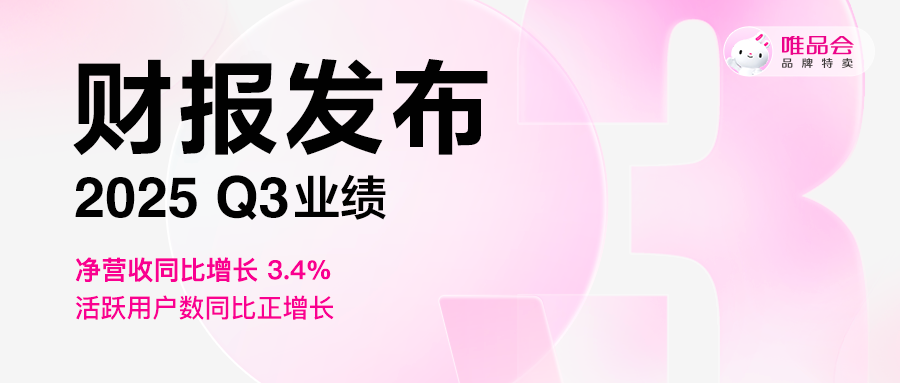 中国领先的在线品牌折扣零售商唯品会发布2025年第三季度财报。财报显示,唯品会第三季度实现净营收214亿元(人民币,下同),同比增长3.4%;Non-GAAP净利润15亿元,同比增长14.6%。同时,第三季度活跃用户数为4010万,同比增长1.3%;商品交易总额(GMV)为431亿元,同比增长7.5%;订单量为1.66亿单,同比增长1.5%。